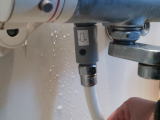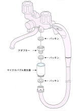 シャワーホースを外した雄ネジにマイクロバブル発生器を取り付けます。 |