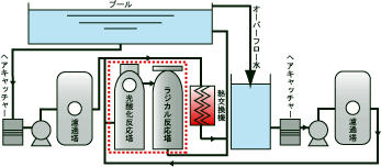 - 既存設備に右記の赤点線内の光酸化促進反応塔とラジカル反応塔を追加するだけです。