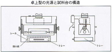 硬化装置本体は光源とそれを収納する外装ケースと強制ブロアーで構成されています。光源は10㎝~15cmの距離で調整出来ます。UVの強さと照度分布